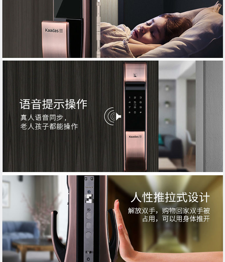 凯迪仕(KAADAS) 指纹锁 V5 智能锁密码锁 家用防盗门指纹锁 电子密码锁 金刚黑